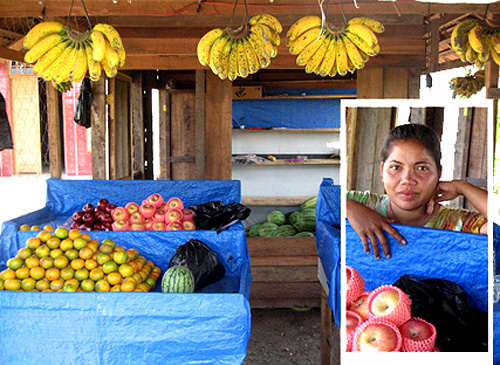 Kafar a reçu 293 euros pour initier un commerce de fruits sur le bord de la route, devant sa maison. Les clients klaxonnent pour signaler leur présence.